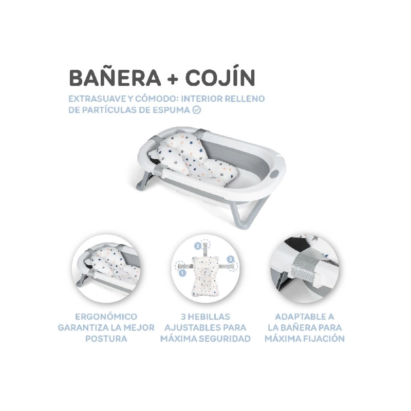 Durante los primeros meses, el momento del baño requiere comodidad, control y confianza, y la Bañera Plegable Flex con Cojín de MS está diseñada precisamente para eso.