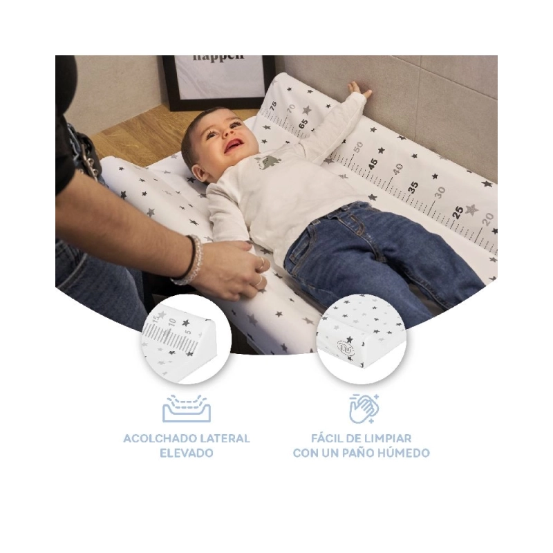 El Cambiador Blando de MS está pensado para ofrecer un espacio cómodo y seguro durante el cambio del bebé, tanto en casa como fuera de ella.