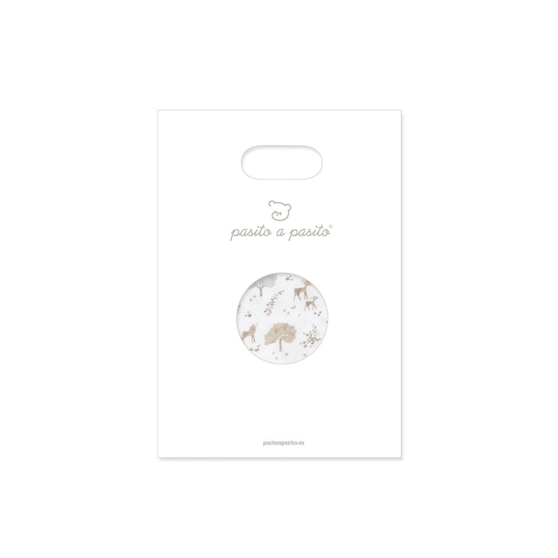 Además, la Muselina Nara de Pasito a Pasito cuenta con un diseño natural con árboles y animalitos, a juego con el resto de la colección.