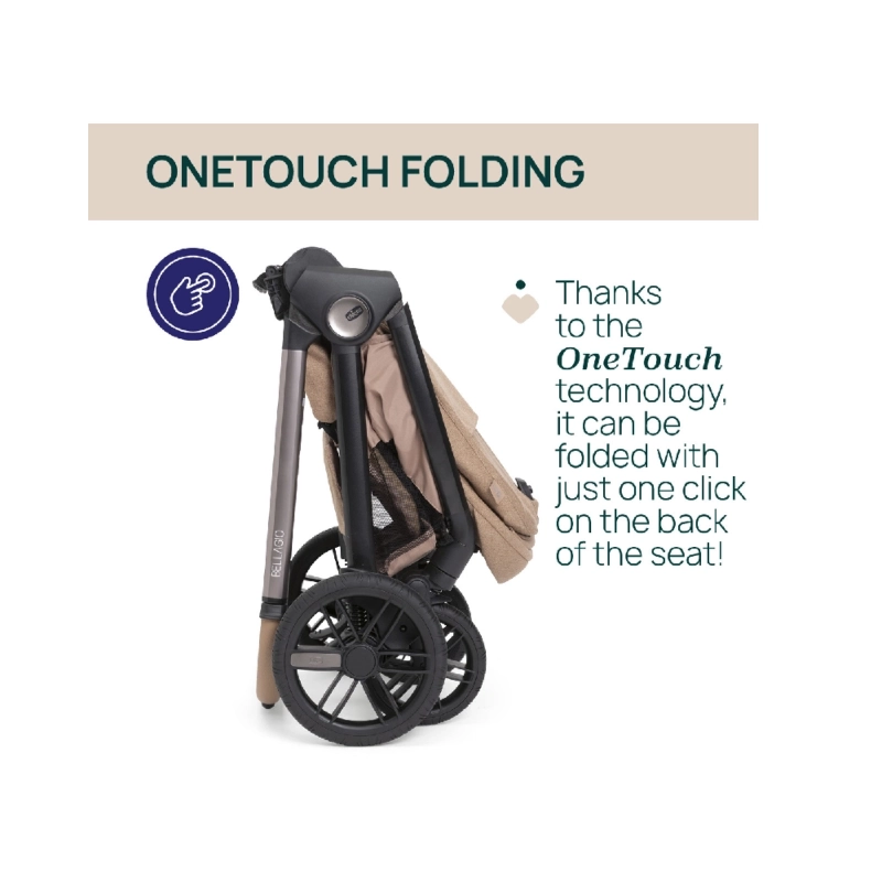 El Coche 3 Piezas Bellagio 2.0 de Chicco combina plegado OneTouch con una sola mano, capazo Flexi compacto y portabebés i-Size, ofreciendo comodidad total desde el nacimiento