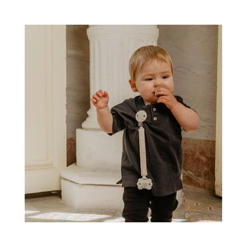 Un sujeta chupetes de cinta decorada con broche para sujetar a la ropa de tu bebé