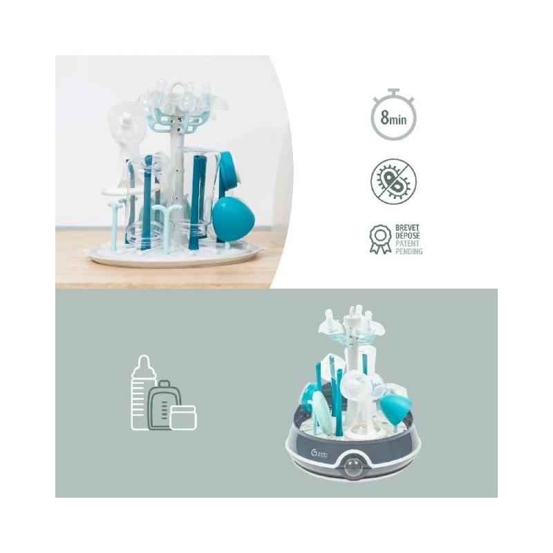 El Esterilizador Secabiberones Turbo Pure 4 en 1 Babymoov ofrece una esterilización eficaz diseñada para eliminar el 99 % de las bacterias más resistentes, garantizando que biberones, tetinas y accesorios del bebé queden completamente higienizados en solo 6 minutos. Su diseño universal permite utilizarlo con la mayoría de biberones, sacaleches y utensilios, adaptándose a las necesidades diarias de mamás y/o papás. Su sistema de boquillas de vapor extraíbles facilita un secado más higiénico y un uso cómodo para cualquier rutina. Además, el Esterilizador Secabiberones Turbo Pure 4 en 1 Babymoov incorpora parada automática y una alarma sonora al finalizar el ciclo, ofreciendo tranquilidad y un funcionamiento intuitivo.