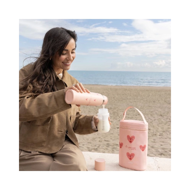 Pensada para facilitar el transporte de líquidos durante salidas o desplazamientos, esta bolsa isotérmica permite mantener la temperatura de termos y biberones durante más tiempo. Su estructura incorpora una capa adicional de aislamiento que ayuda a conservar tanto el calor como el frío, algo útil en rutinas fuera de casa.