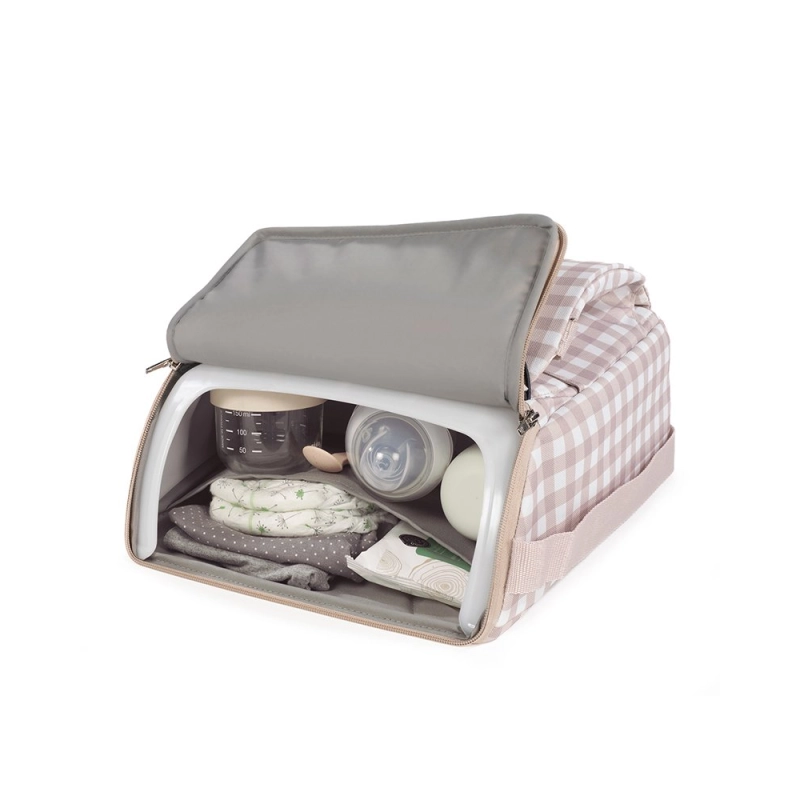 Se trata de una trona plegable que combina comodidad y funcionalidad para ofrecer un espacio cómodo a los peques y almacenamiento para mamás y papás.