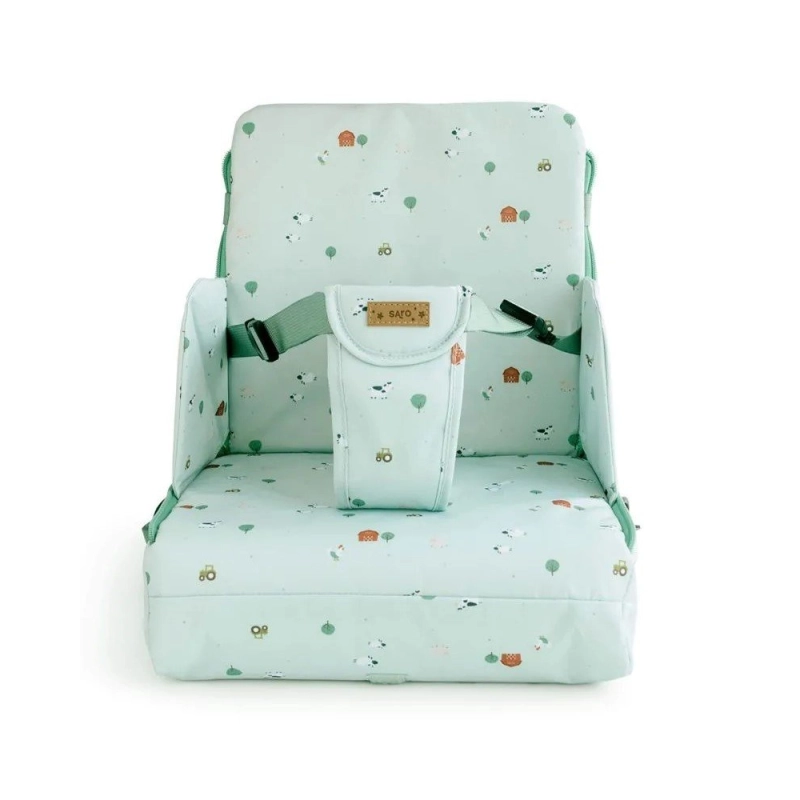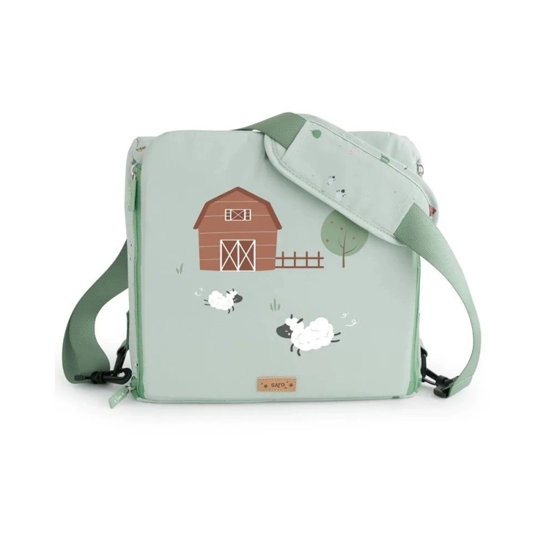 Esta práctica Trona de Viaje de Saro cuenta con un amplio compartimento con cierre de cremallera, ideal para llevar una botella, toallitas, el babero... Su asa larga ajustable, permite llevarla más cómodamente como si de un bolso se tratase. Además, su plegado compacto y su estructura resistente la hacen perfecta para usar tanto en casa como en restaurantes, vacaciones o visitas a casa de familiares.