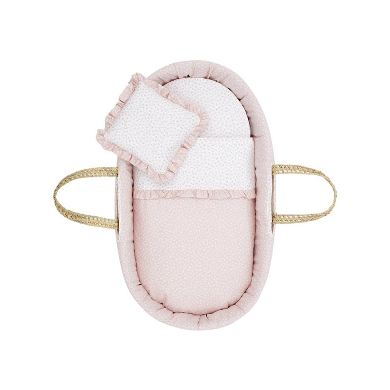 Incluye base de mimbre, colchón, colcha, cojín y vestidura, todo coordinable con la decoración.