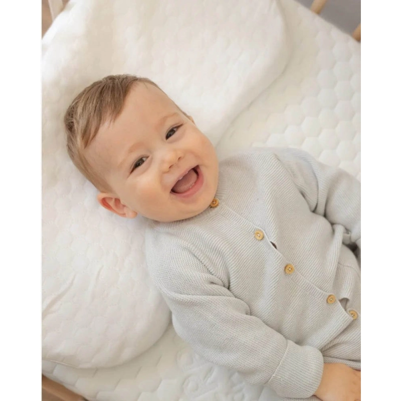 El cojín de 30x25 cm está recomendada hasta los 12 meses de vida. Es desaconsejable que los bebés recién nacidos hasta los 6 meses utilicen almohada porque puede interferir en su desarrollo y aumentar el riesgo de asfixia o SMSL. Se recomienda su uso cuando el bebé esté despierto y siempre bajo la vigilancia de un adulto, al menos hasta que el bebé tenga 6 meses y/o sea capaz de darse la vuelta por sí solo. Debido a sus medidas reducidas, esta almohada antiplagiocefalia puede usarse en dispositivos móviles como cochecitos, hamacas, sillas de paseo, moisés y minicunas, etc.