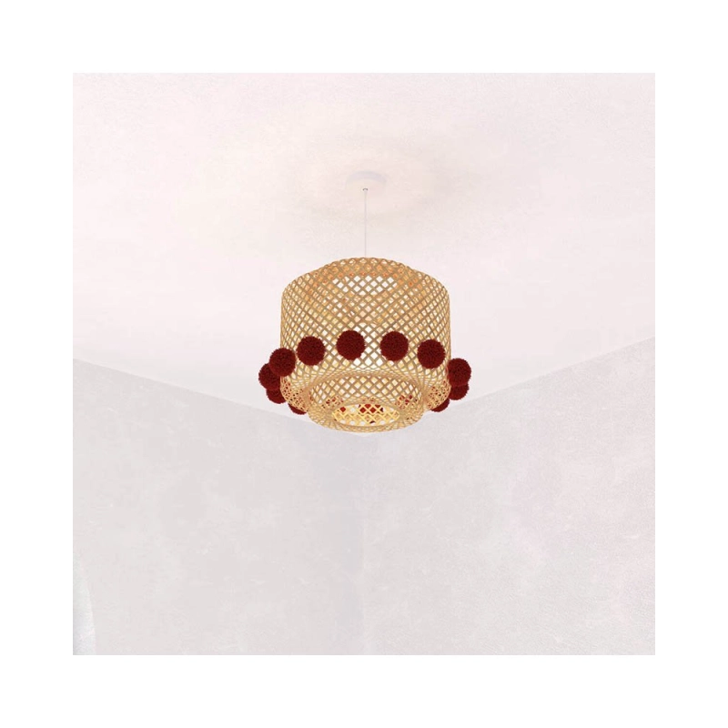 Con detalles decorativos de borlas en tonos cálidos, esta lámpara combina funcionalidad y estilo, convirtiéndose en un elemento decorativo único.