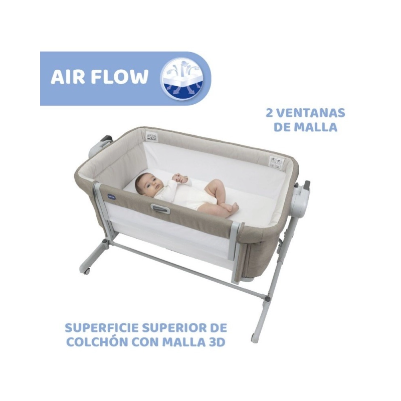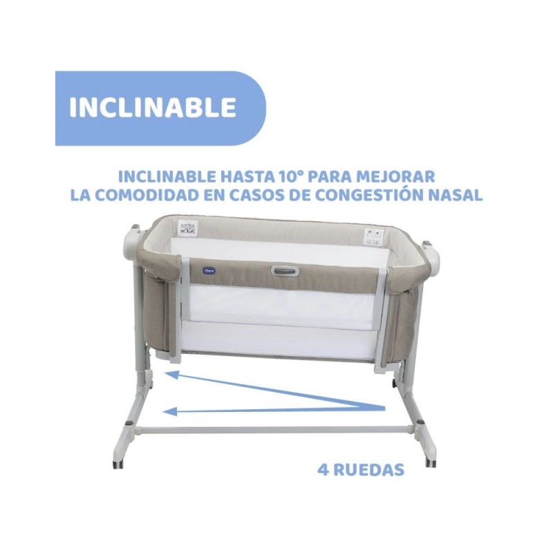 La minicuna Chicco Next to me Magic Evo está diseñada para inclinarse ligeramente, hasta 10º, lo que facilita que los bebés digieran sus alimentos después de las tomas o cuando tienen congestión nasal.