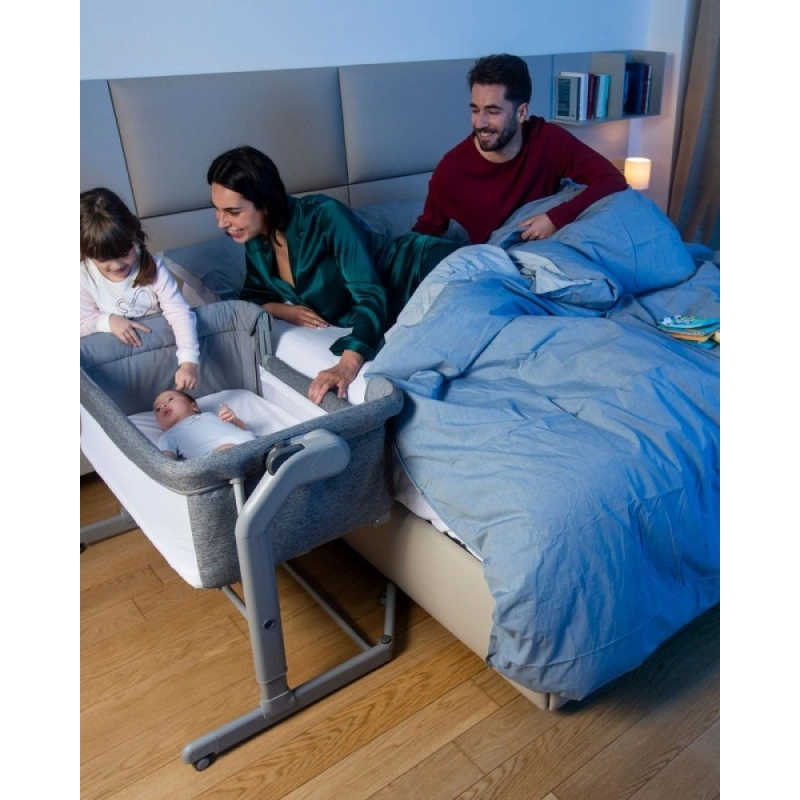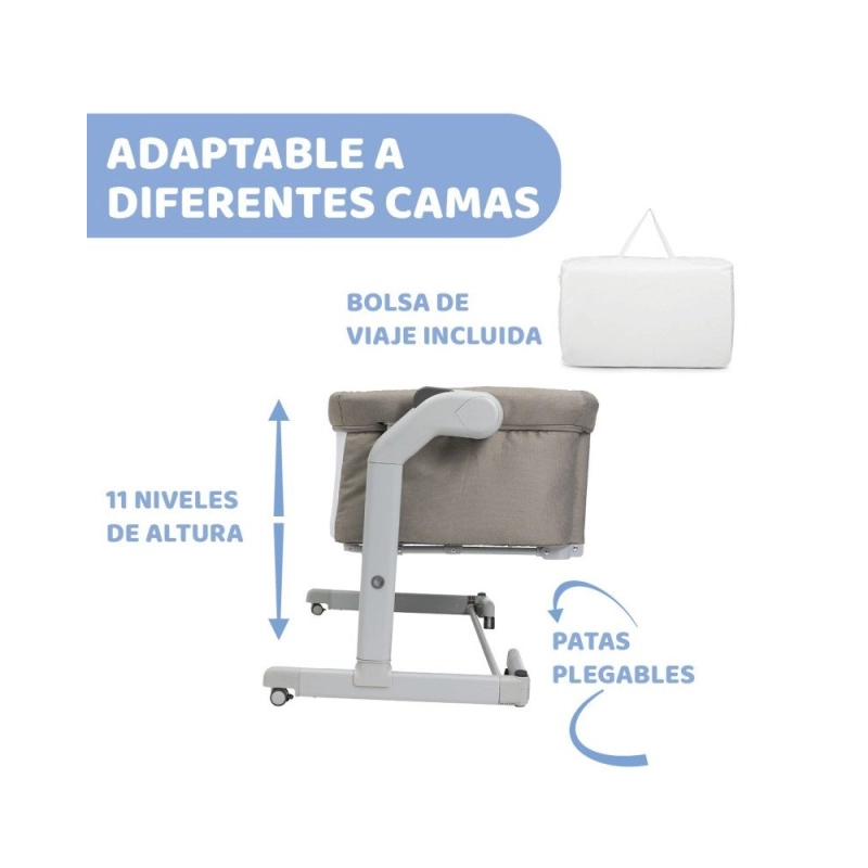Chicco Next2Me Magic Evo es como una cuna camaleónica con sus 11 niveles de altura ajustables que pueden adaptarse a cualquier tipo de cama. Incluso puedes plegar las patas para que encaje perfectamente junto a las camas con cajones. Además, viene con un práctico kit de correas de instalación que funciona con todas las camas.