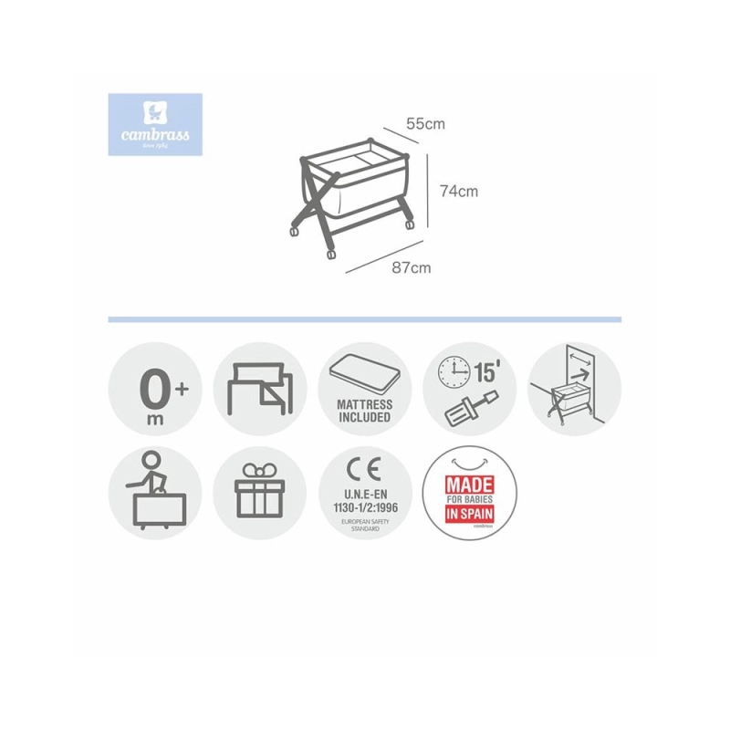 Con su diseño clásico y elegante, la Minicuna Tijera de Madera Magia de Cambrass es una opción funcional y elegante para los primeros meses del bebé.