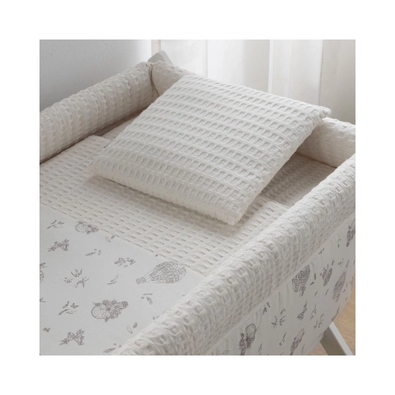 De acuerdo con la normativa europea EN 1130 UNE-EN 11890:2018 y el Real Decreto 1801/2003 sobre seguridad general de los productos, esta minicuna no es plegable. Debe dejar de utilizarse cuando el bebé pueda sentarse por sí solo, levantarse o impulsarse con manos y rodillas.