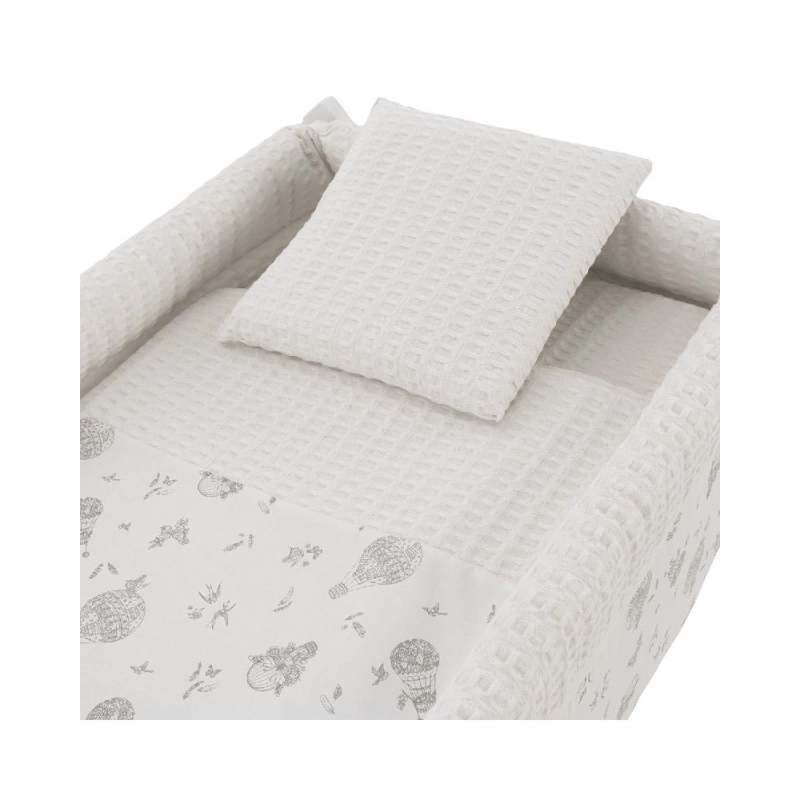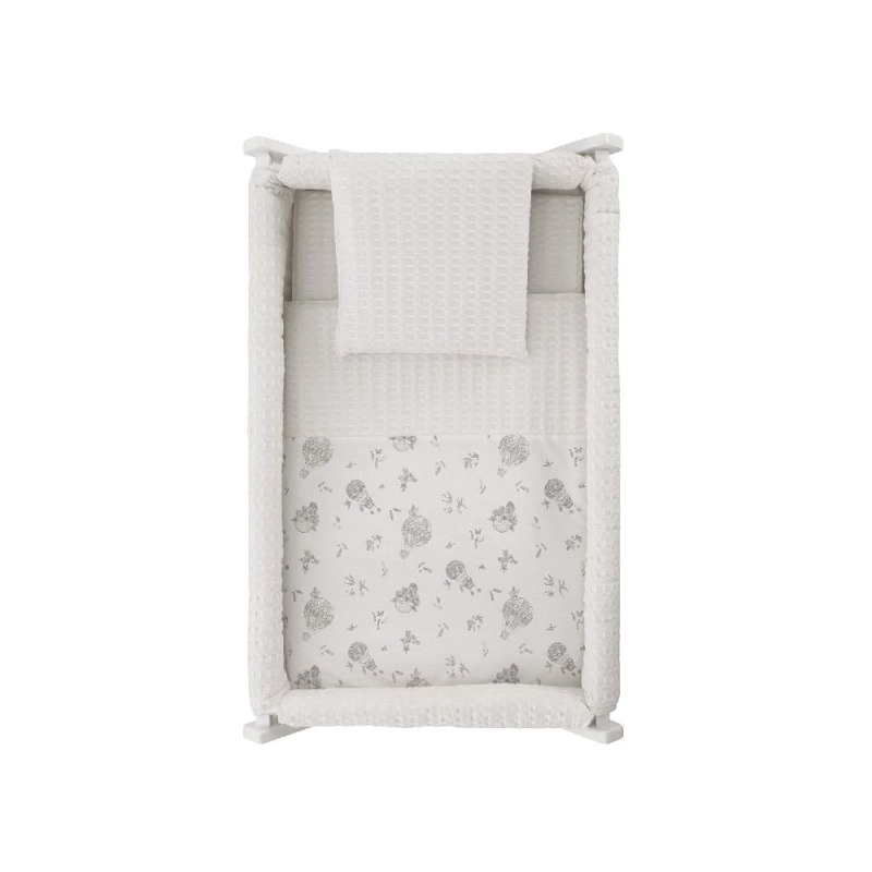 Gracias a sus ruedas con freno, permite trasladarla cómodamente de una habitación a otra, facilitando que el bebé descanse siempre cerca de mamás y/o papás. Incluye vestidura cosida con colcha y relleno, almohada, colchón y somier de madera de 5 mm, además del soporte de madera.