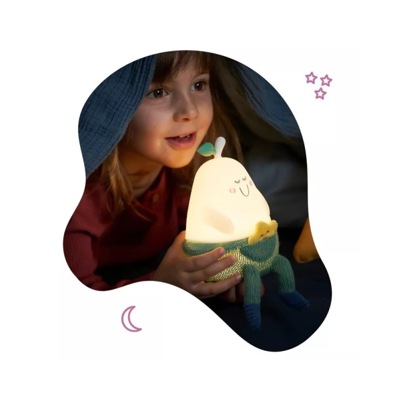 Con 3 modos de luz (blanco fijo, ciclo de 6 colores o color fijo), Bertille ofrece un punto de luz ideal para tranquilizar, acompañar durante la lactancia nocturna o ayudarte a encontrar el chupete sin encender luces fuertes. Además, funciona con batería recargable y ofrece hasta 10 horas de autonomía, lo que la convierte en una lámpara portátil perfecta para llevar en casa o de viaje. Un pequeño personaje mágico que ayuda a crear rutinas de sueño más serenas.