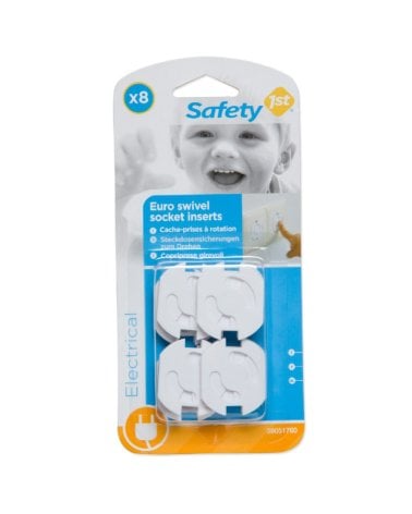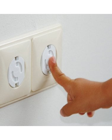 Protección para enchufes, Proteja a sus niños con ella. Se ajusta al enchufe mediante cinta adhesiva, ya incorporada. Para enchufar un aparato, sólo hay que girar el enchufe.