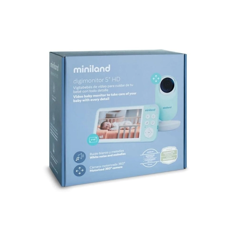 El Vigilabebés Digimonitor 5" HD de Miniland ofrece máxima tranquilidad gracias a su pantalla de 5 pulgadas en alta definición y visión nocturna automática.