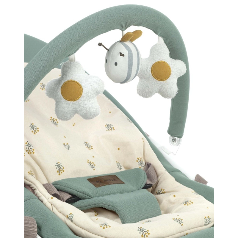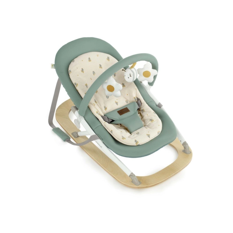 La Hamaca Kalm de Jané cuenta con una base de madera natural e incluye un reductor y un arco de juegos que encantará a tu bebé.