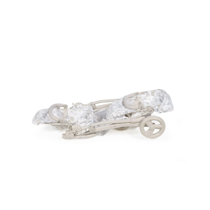 La Silla Muñecas Gemelar Nara de Pasito a Pasito es el juguete perfecto para que los niños y niñas a partir de 3 años disfruten de pasear a sus dos muñecas favoritas con estilo y comodidad. Pertenece a la exclusiva colección Nara, con un delicado estampado de cervatillos en tonos beige que aporta ternura y elegancia al juego de simulación.