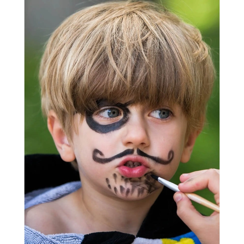 - Incluye: 3 colores (blanco, negro y rojo), brocha cosmética y 2 tutoriales (para maquillar como pirata o como mariquita).