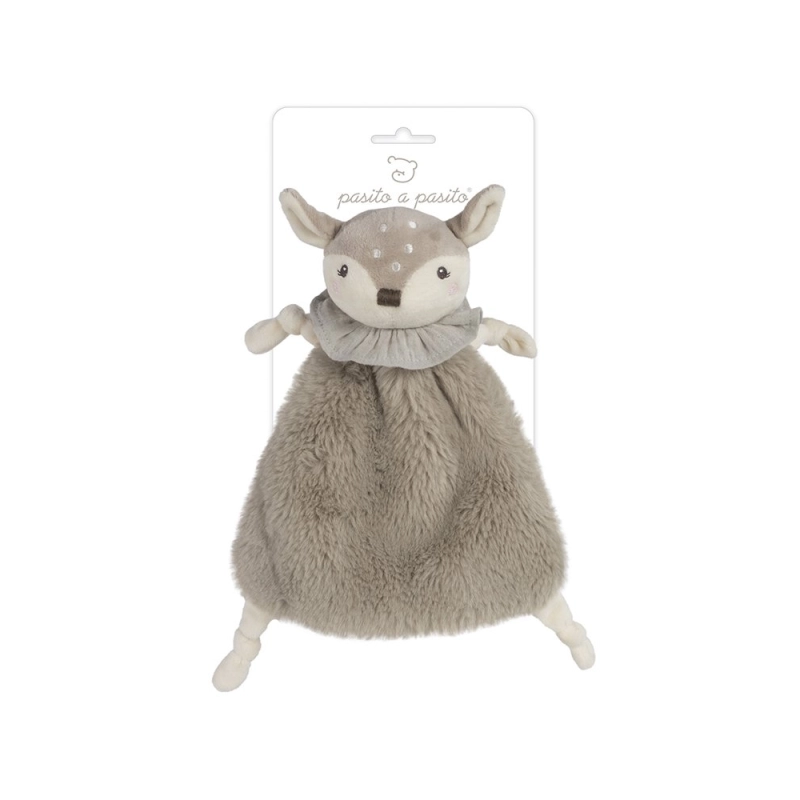 Su diseño combina una manta de tacto muy agradable con la cabecita de un pequeño ciervo, fácil de agarrar por las manitas del bebé.