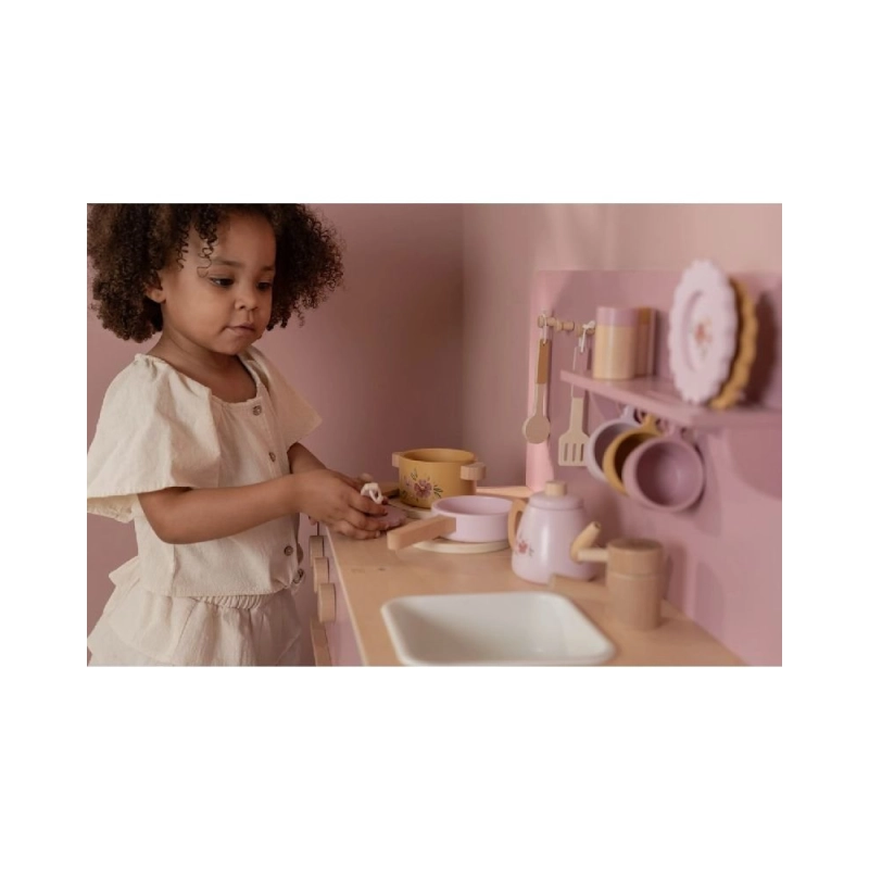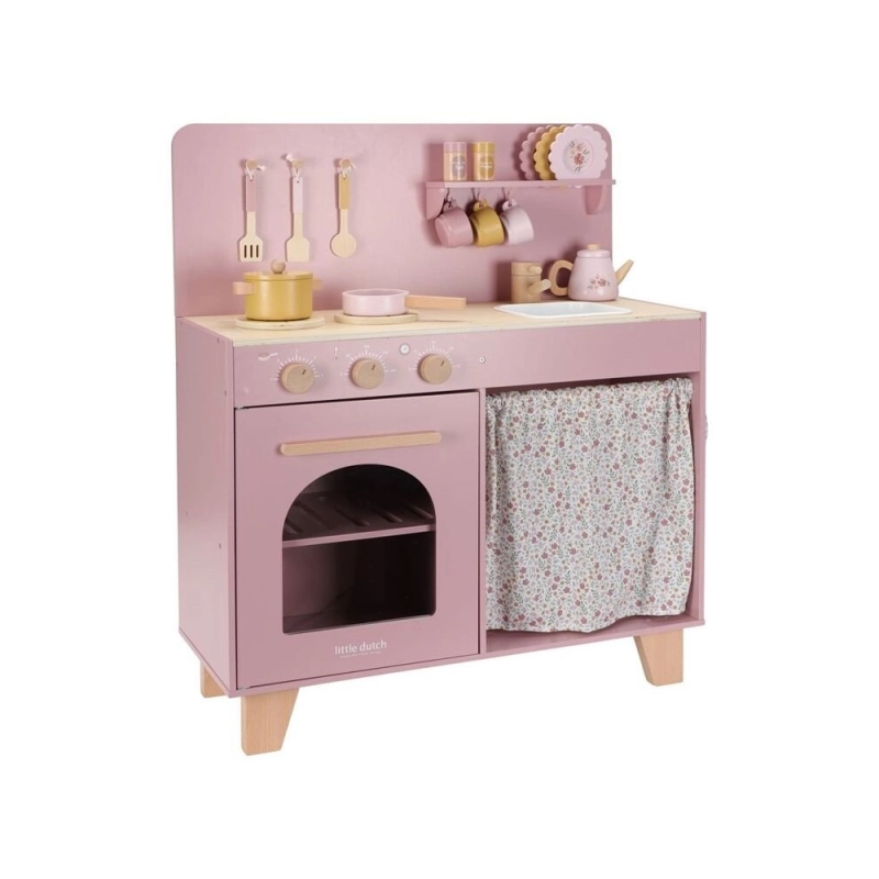 Cocina de juguete de madera en color rosa de la marca Little Dutch. Se adapta perfectamente a la habitación de juegos, la habitación del peque o la salita de casa. Esta cocina de juguete incluye accesorios de cocina para que puedan jugar todos los niños. Recomendado a partir de 3 años. Con este juego los peques aprenden coordinación y habilidades sociales.