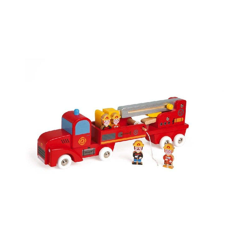 El Camión Bomberos de Janod es un imprescindible para los peques que sueñan con acudir al rescate, ofreciendo un vehículo robusto y lleno de detalles que invita a imaginar aventuras desde los 2 años. Fabricado en madera y con un diseño cuidado, este camión incorpora una manguera antiincendios y una escalera telescópica giratoria que permite recrear situaciones reales de emergencia mientras se estimula la creatividad. Incluye cuatro bomberos que acompañan cada misión, animando a inventar historias, practicar juego simbólico y desarrollar habilidades sociales a través de la acción y el movimiento. Además, el Camión Bomberos de Janod destaca por su resistencia y su formato manejable, convirtiéndose en un compañero ideal para explorar, construir escenas y disfrutar del mundo de los héroes del fuego.