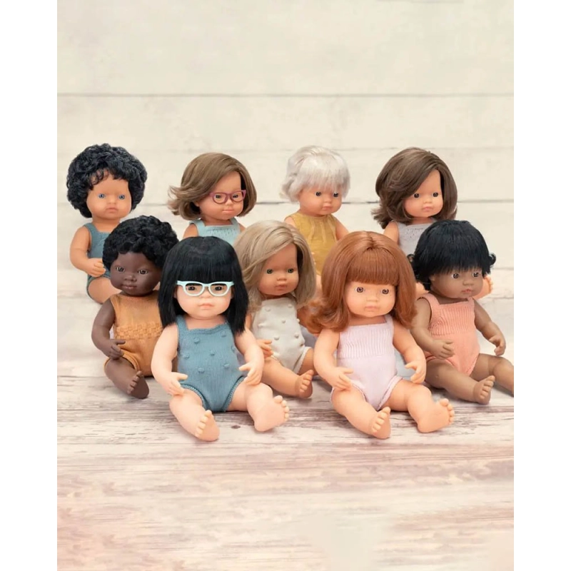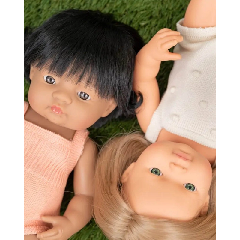 Aunque la Muñeca Latinoamericana con Pelele 38 cm Miniland Dolls viene vestida con un bonito pelele de punto, puedes cambiarla de look con algún conjunto de la Colección de Ropa Miniland Dolls.
