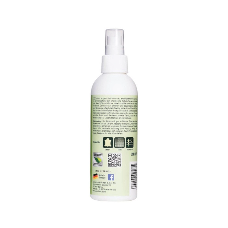 Es ideal para pieles lisas, gamuzadas, materiales sintéticos y textiles, garantizando un cuidado suave y sostenible. Formulado sin gases propulsores ni PFC, este spray es seguro para su uso en interiores.