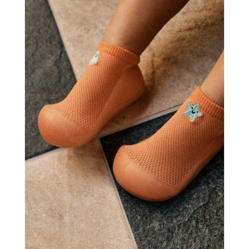 Cada pie tiene un bordado marino distinto, pensado para fomentar la autonomía del bebé al aprender a identificar y colocarse el calzado correctamente. Además, el Calzado Attipas Sea tiene caña baja hasta el tobillo, es flexible, transpirable.