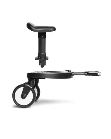 Este Patinete Buggy Board para silla de paseo de Asalvo es universal y se adapta a la mayoría de sillas de paseo del mercado. La suspensión en las ruedas permite manejar la silla con él acoplado más fácilmente.