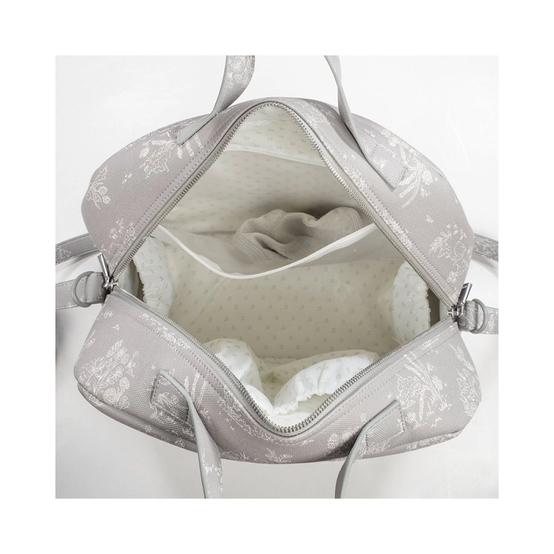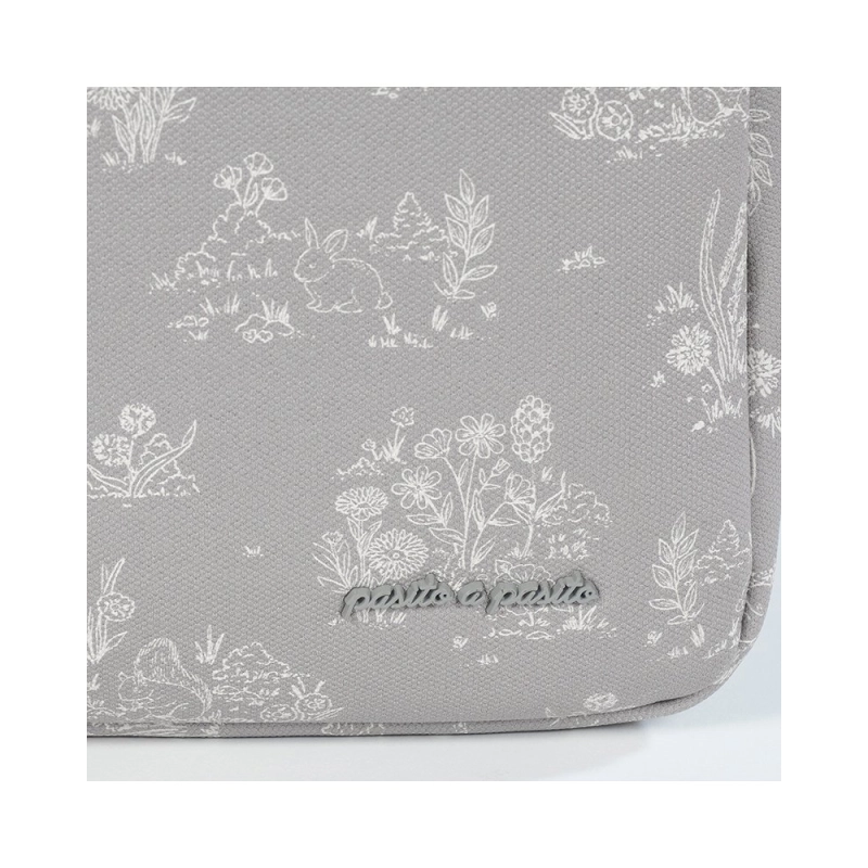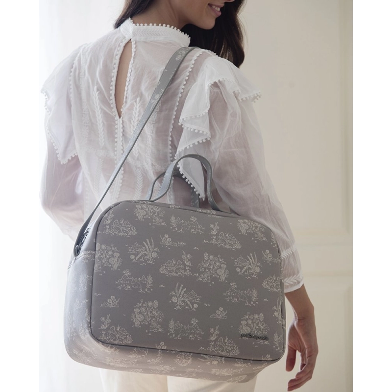 Fabricada con resistente polipiel, la Bolsa Canastilla Toile de Jouy de Pasito a Pasito ofrece una gran versatilidad y capacidad de almacenamiento.