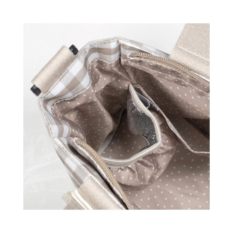 Gracias a su gran tamaño de almacenamiento, en su interior encontrarás varios bolsillos entre los que destacan un compartimento térmico para biberones y un compartimento impermeable ideal para llevar ropita húmeda.