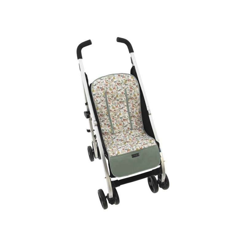La Colchoneta Recta Jaguar de Rosy Fuentes es ideal para mantener la silla fresca y cómoda durante los meses de calor. Diseñada con un estampado alegre de inspiración selvática, aporta un toque divertido al paseo de tu peque.