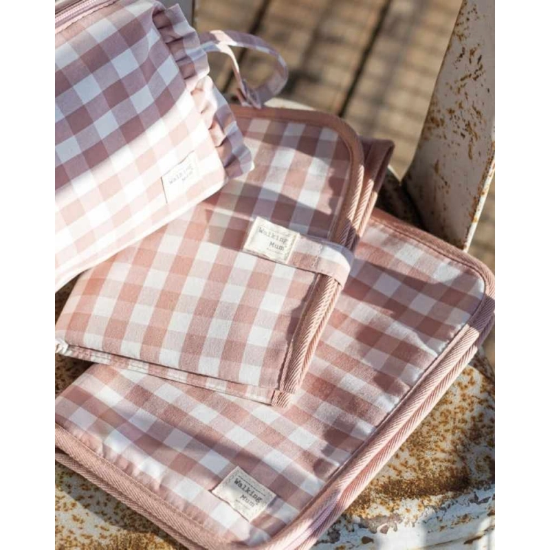 El portadocumentos de la colección Remy de Walking Mum es de gran calidad y con mucho estilo. Diseñado para los papis más urbanos y modernos con un estampado en cuadro vichy XL. Este portadocumentos bebe está disponible en dos colores: verde y rosa.