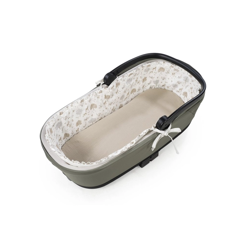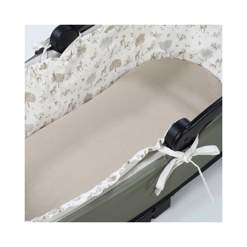El Interior de Capazo con Bajera Nara de Pasito a Pasito transforma el cuco en un espacio acogedor y elegante para los primeros paseos del bebé. Está compuesto por un cubre capazo con estructura para varillas y una sábana bajera ajustable a juego, todo en algodón 100%. Esta estructura de varilla mantiene el cubre capazo con la forma correcta en el interior del capazo. Lo hace compatible con capotas con cierre de cremallera.
