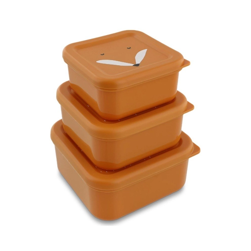 El Pack 3 Fiambreras Nido Mr. Fox de Trixie permite llevar meriendas y snacks de diferentes tamaños de manera cómoda y segura. Cada fiambrera está decorada con el simpático personaje Mr. Fox y cuenta con tapas fáciles de abrir para que los niños puedan usarlas sin dificultad. Las tres piezas encajan unas dentro de otras, ocupando poco espacio cuando no se utilizan. El Pack 3 Fiambreras Nido Mr. Fox de Trixie está fabricado con base de polipropileno y tapas de polietileno, materiales resistentes y aptos para lavavajillas. Recomendado a partir de 3 años.